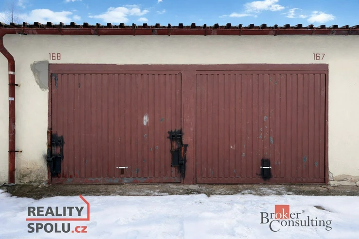 Dvougaráž je v dobrém stavu, suchá, zděná a v družstevním vlastnictví. Je napojena na elektřinu s vlastním elektroměrem, má vlastni svítidla a zásuvky. Vjezd zajišťují vyklápěcí plechová vrata, střecha je z vlnitého plechu.